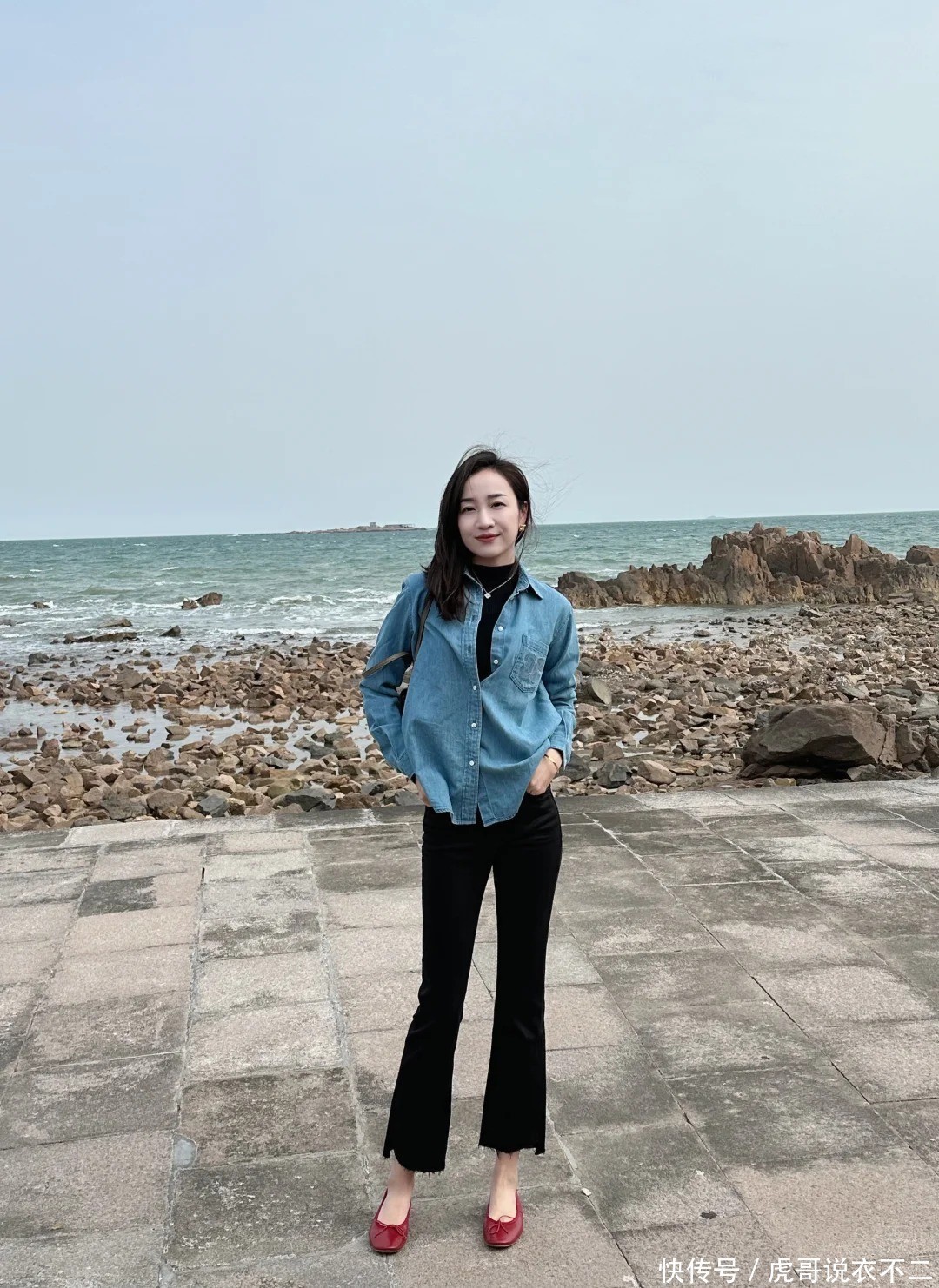 4、牛仔衬衫+微喇裤:守旧回潮的显瘦神器