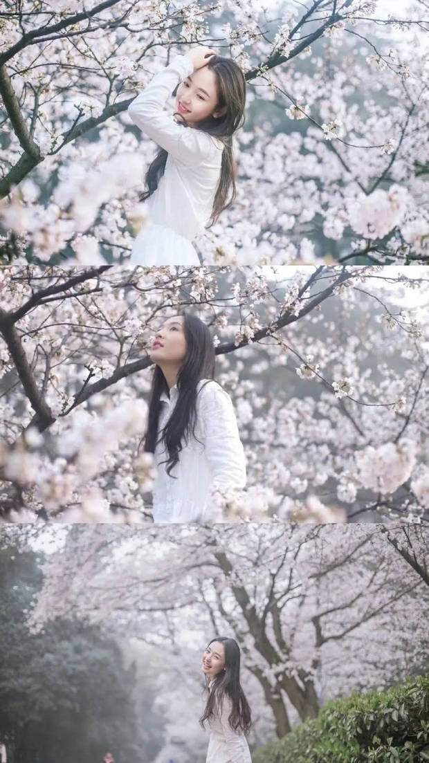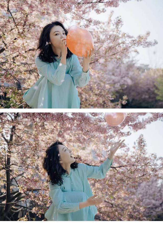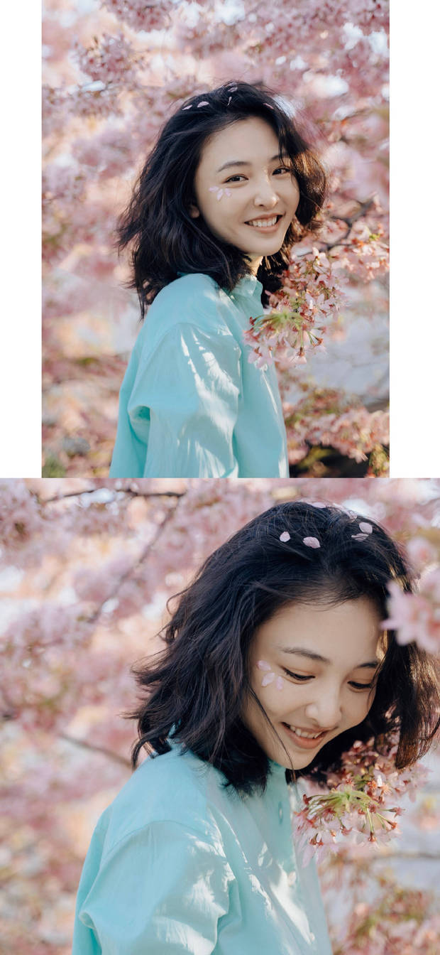 吴倩头发上落上樱花,似乎连樱花也偏疼好意思女。