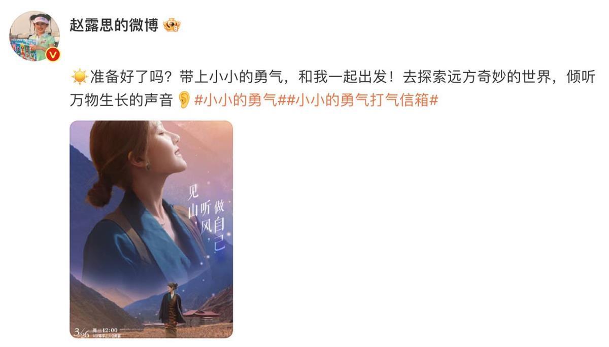 3月26日,“赵露想素颜录综艺”“赵露想作念不了的事我就说敌对”登陆微博热搜,记者重视到,《小小的勇气》定位为“东谈主文纪实类”节目,将于3月27日起登陆芒果TV及湖南卫视。
