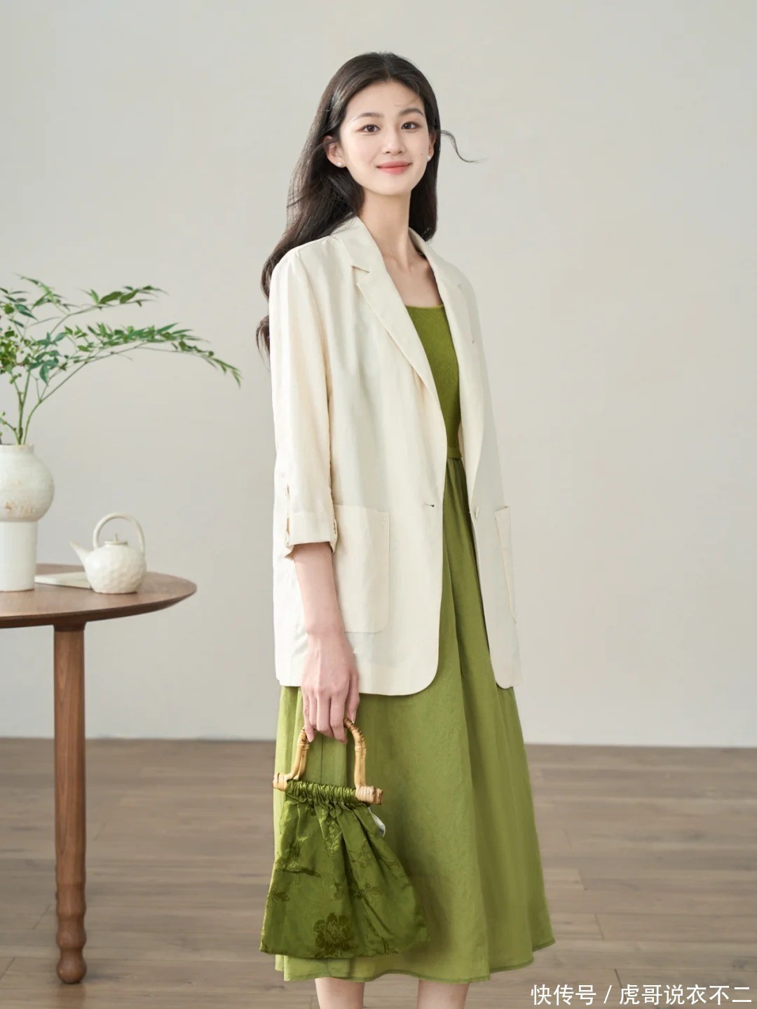传统西装容易酷热?今夏选醋酸缎面或亚麻混纺材质,让肌肤在行走间享受清风穿堂的快感。薄荷绿、雾霾蓝等冷色调自带视觉降温完了,内搭真丝吊带,袖口稳重挽起,表现纤细手腕,已而冲破千里闷印象。