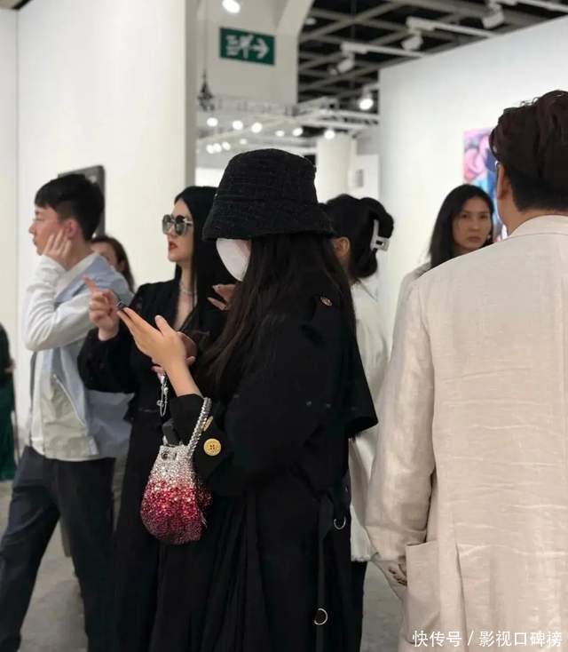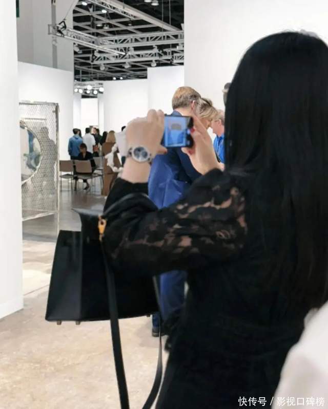 在现场看到我方心爱的作品提起相机拍下,另一只手拎着名牌包包。