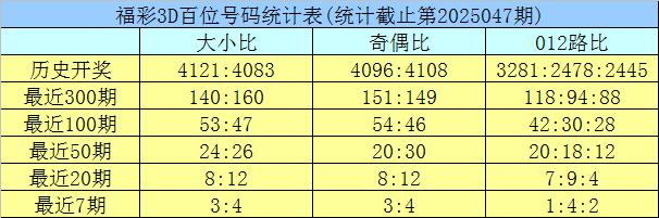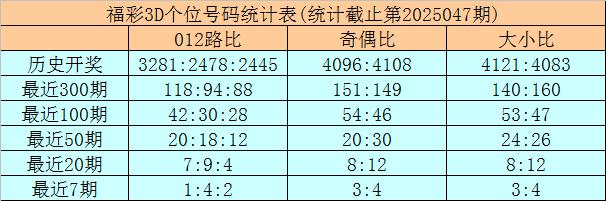 开奖总结:福彩3D第2025047期奖号为:248。奖号方法开出组六,奇偶比开出0:3,012路比为0:1:2,大小比为1:2。