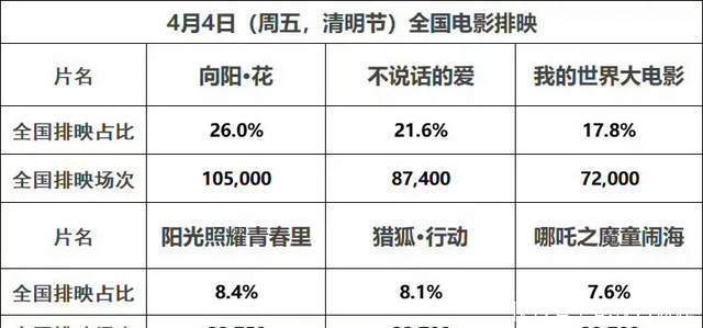 此外,是老本骚扰拍片情况依然隆起。冯小刚执导,赵丽颖主演的《晨曦花》背靠大树,拿下了上映首天向上23%的排片占比。又以张艺兴流量为主的电影《不语言的爱》,背靠粉丝,在首映今日冲预售,刷出了向上37%的拍片占比。