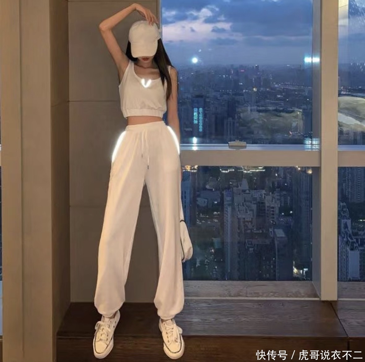 米白色露脐背心+同色系束腿阐发裤+阐发鞋,选拔同色系棒球帽加持,合座造型可以糟塌在阐发与出街之间无缝邻接。