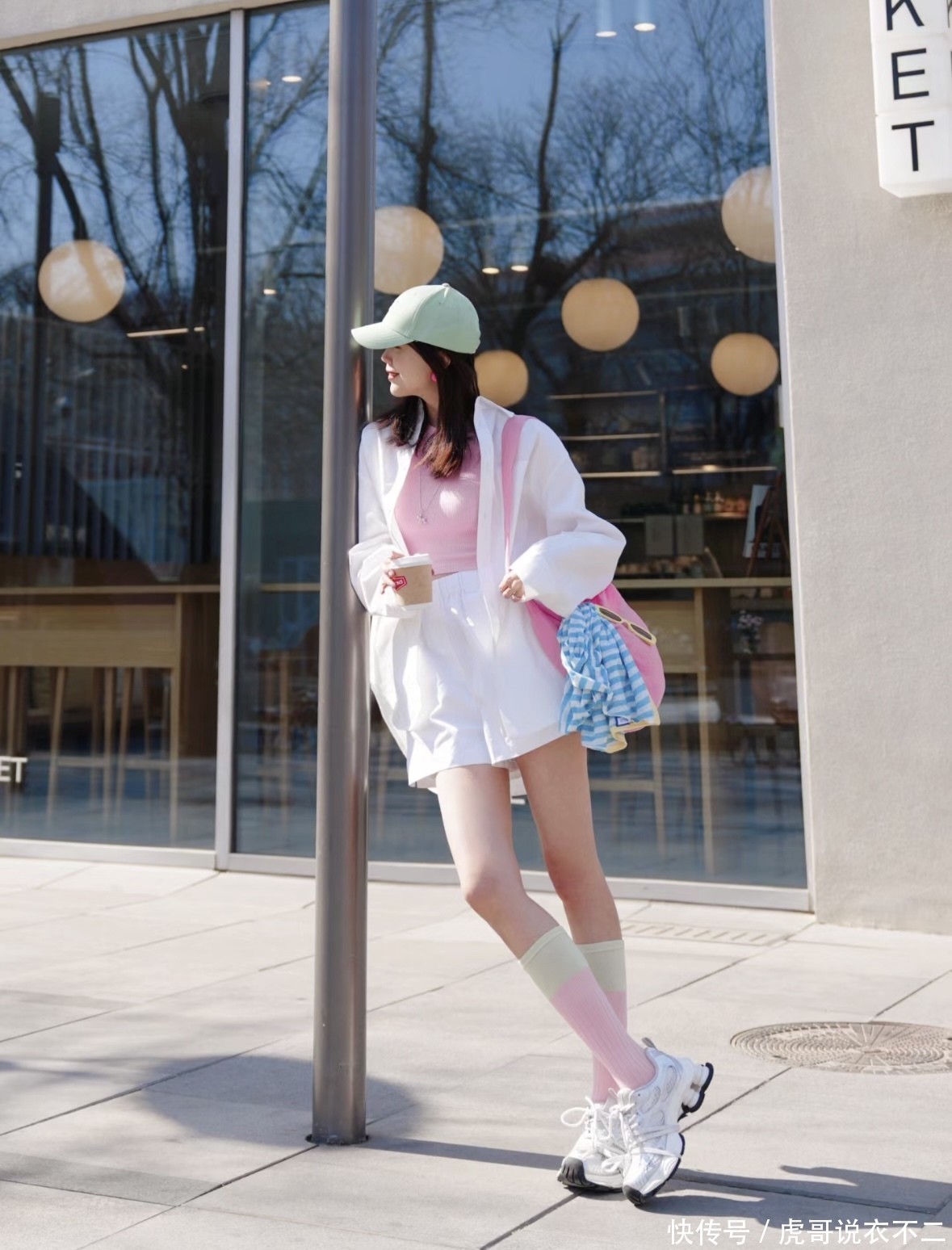 白色的卫衣+贯透风短裤套装,鞋子选拔纯白色阐发板鞋,若是以为整套造型太过单调,可以选拔条纹袜+亮色棒球帽,给通盘这个词造型加多更多的活力感。