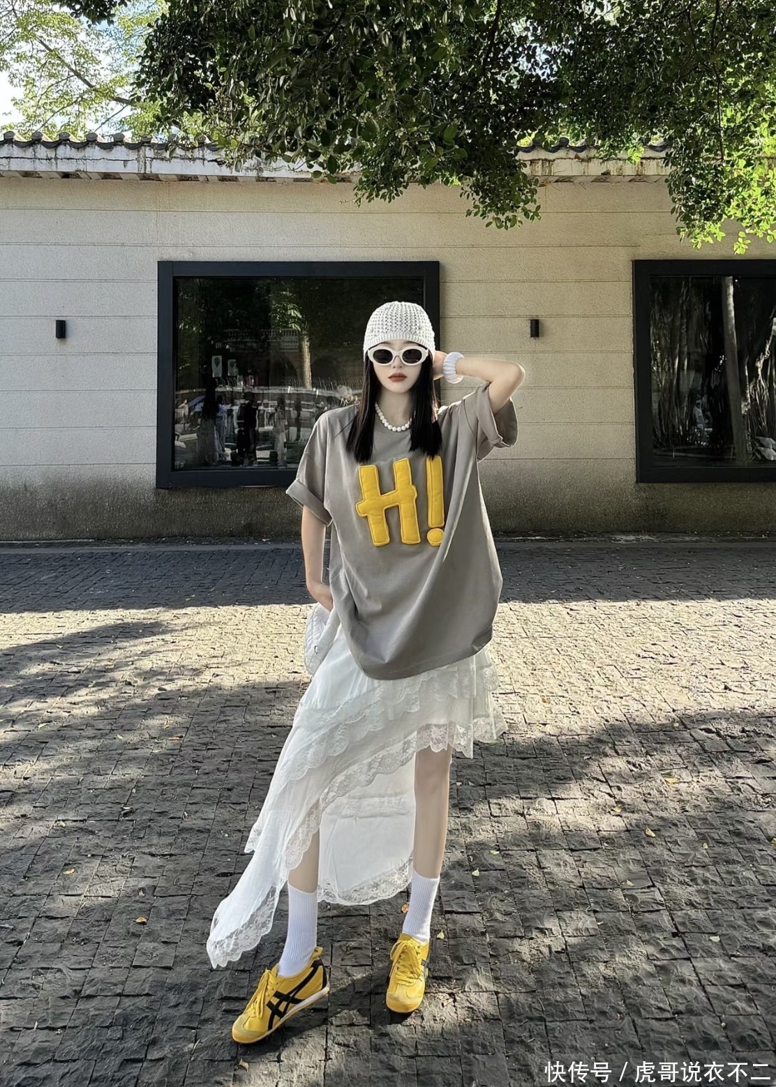 比如当贯透风卫衣或者T恤遇上半身裙,证明注解的是另一种温暖,灰色短袖T恤+白色不限定蕾丝半裙,将文雅与个性以及散漫感好意思满会通,走到那处皆是东说念主群中焦点的存在。