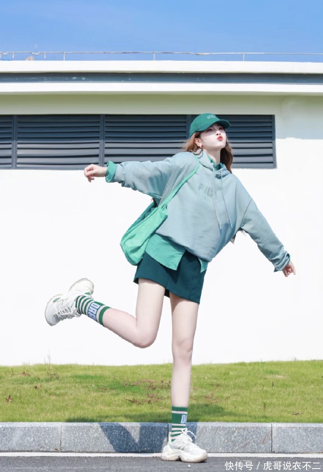 可爱彩色搭配的更是不成错过阐发混搭风,卫衣+衬衫叠穿,一步短裙配阐发鞋,绿色系单品浅深不一的颜色递进,这才是初夏日节的正确掀开面孔。