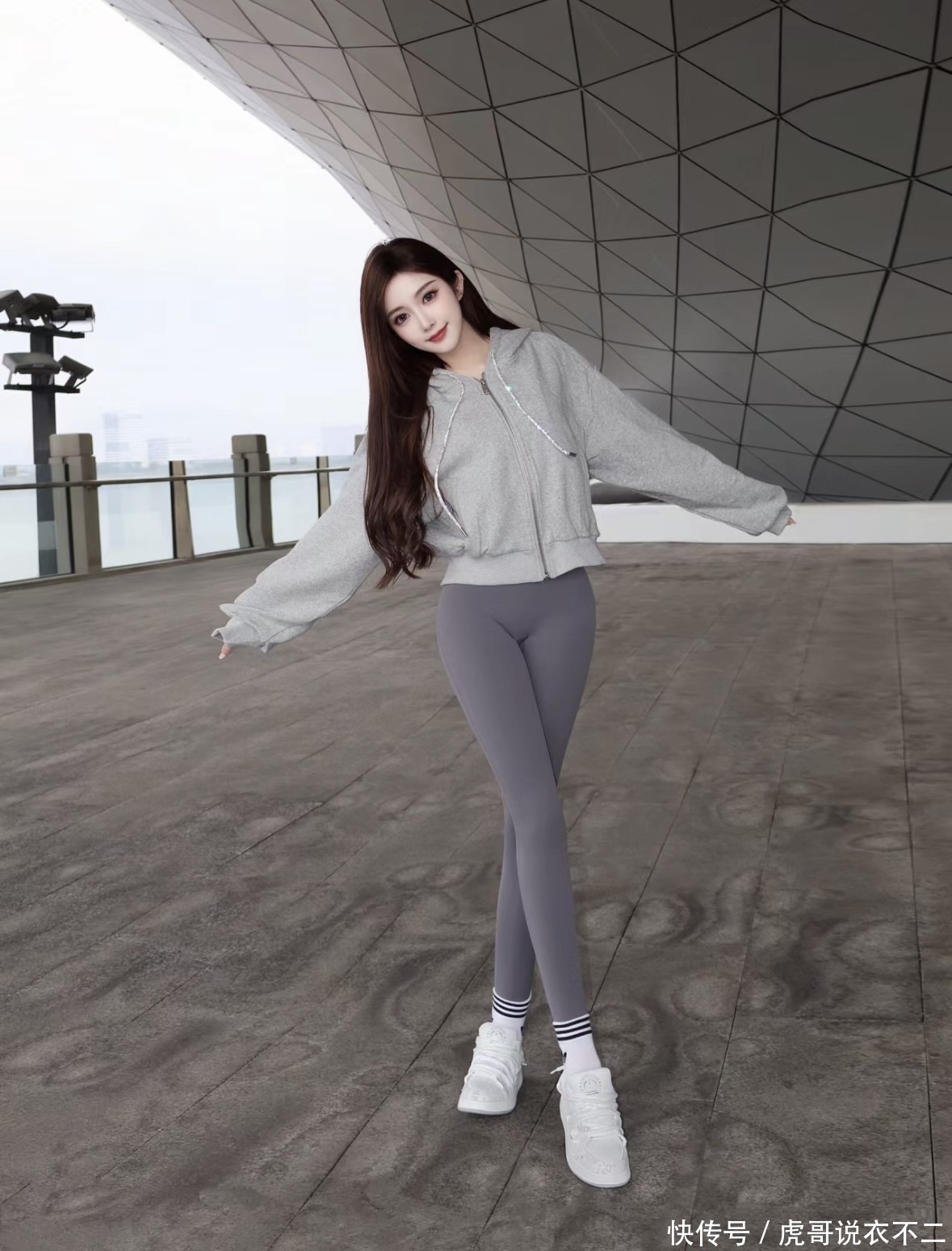 但若是肉体够苗条,瑜伽裤如实是可以的选拔,短款卫衣+瑜伽裤+阐发鞋,就能糟塌展现好意思满肉体,活力感十足。