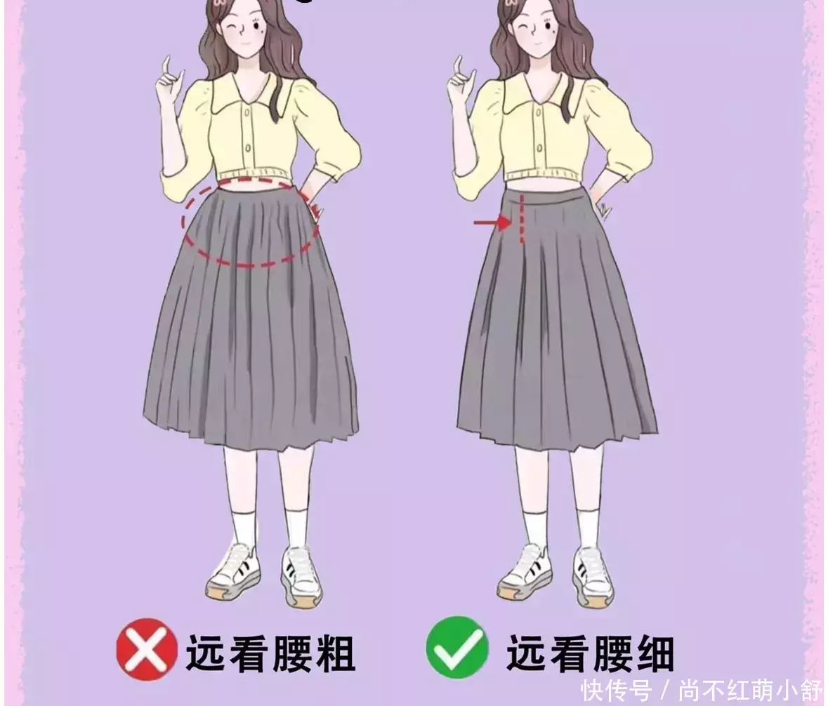 避雷1)幸免显痴肥:伞裙蓬松,衬衫幸免过长或过厚,腰线一定要明晰。