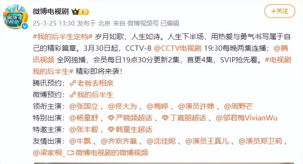 我的后半生定档.微博电视剧