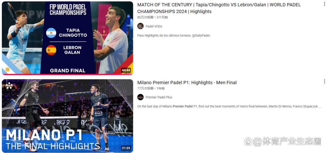 咱们翻查了笼式网球超等巡回赛在YouTube的官方账号「Premier Padel」,在这里,近300个集锦实质的收看量唯一3个升迁了10万,而被C罗转接的阿谁官方直播流,在此之前更是唯一1次收看量升迁了30万。