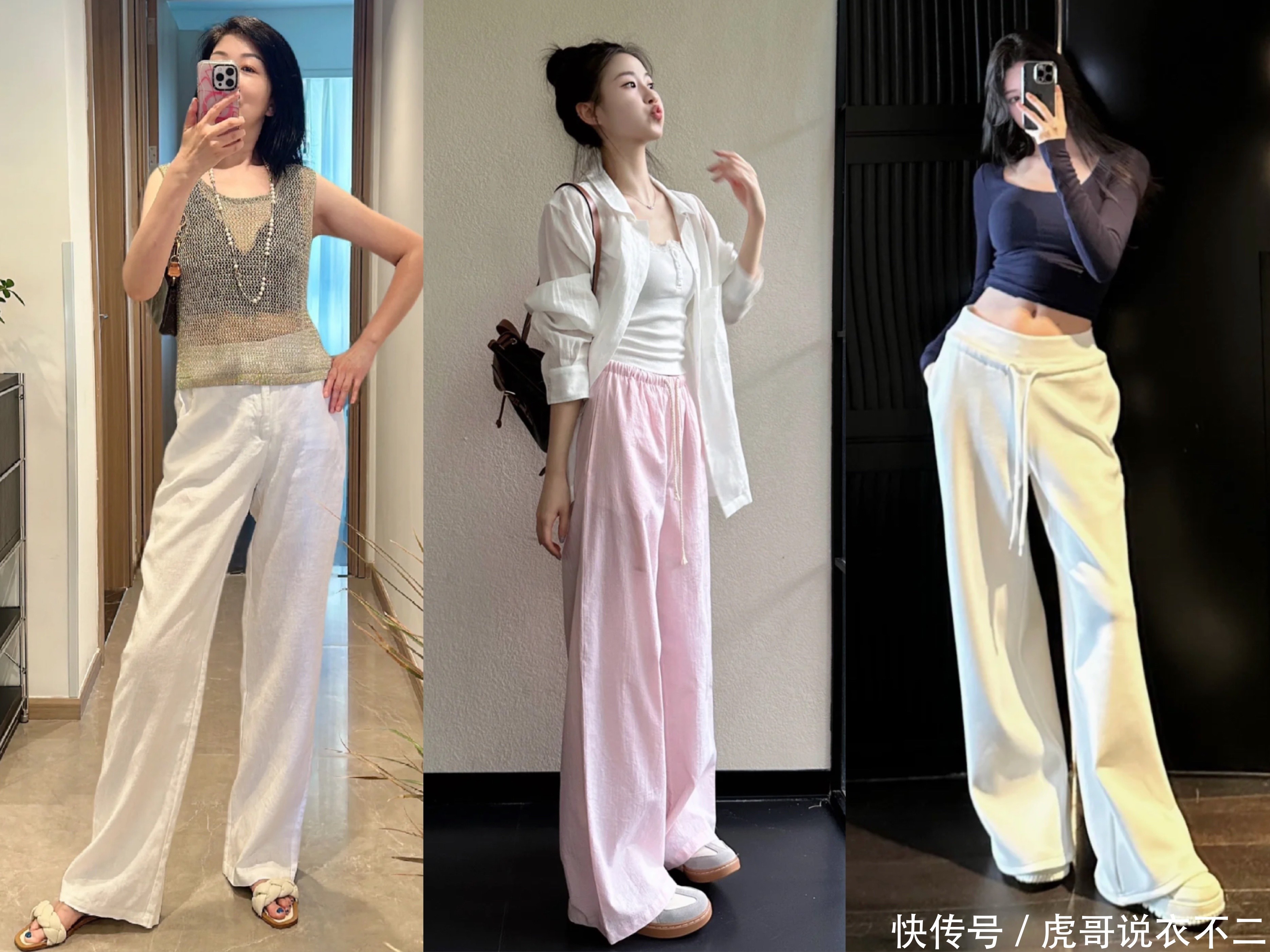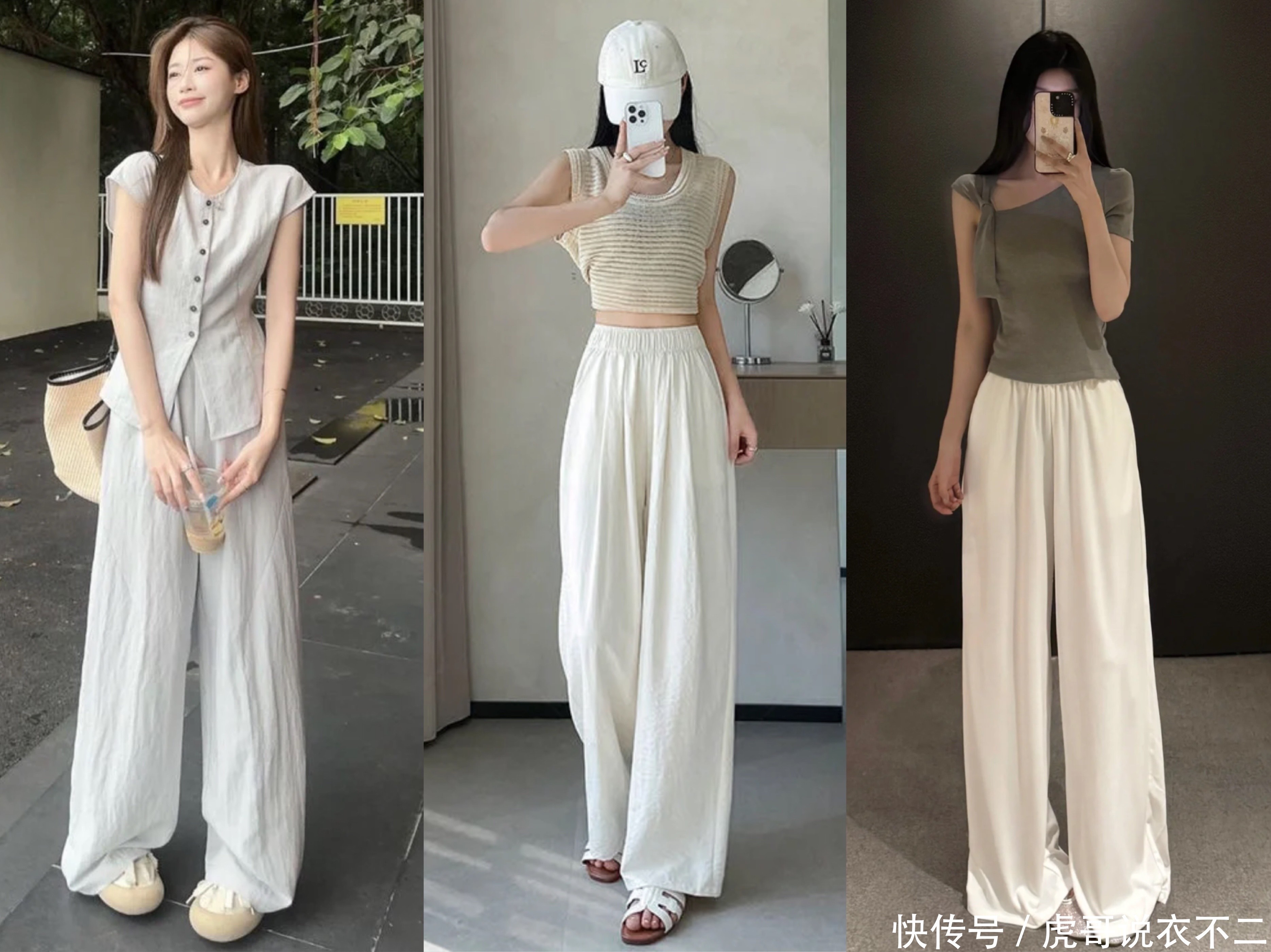 白色阔腿裤干净地说念,如同夏季里的一抹凉爽,与各式风物的上衣齐能调解搭配,简陋营造出清醒宜东说念主的氛围。米色阔腿裤顺心又百搭,给东说念主一种优雅知性的嗅觉,无论是搭配检朴的 T 恤也曾缜密的衬衫,齐能展现出特有的魔力。