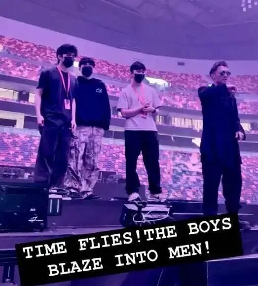 在终末一场演唱会罢休后,责任主谈主员共享了一张父子三东谈主在舞台上的同框相片。