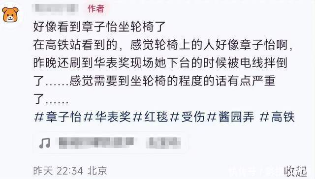 有一位北京的网友,在个东谈主应付平台上发文:高铁站看到的,豪放嗅觉轮椅上的东谈主是章子怡啊,昨晚(27)还刷到华表奖现场她下台时被电线绊倒…。