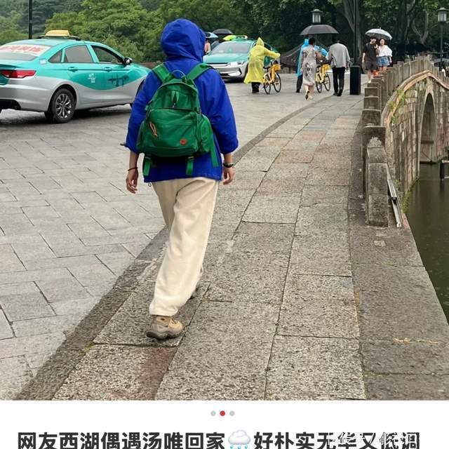 汤唯回到家乡杭州投入了某著名栈房的开业典礼,与刘嘉玲、凯特·布兰切特同框激发烧议后,脱去华服一个东说念主背上了帆布包,穿户外服和卫裤畅通鞋,在西湖边瞎散步,还采取坐地铁和公交。