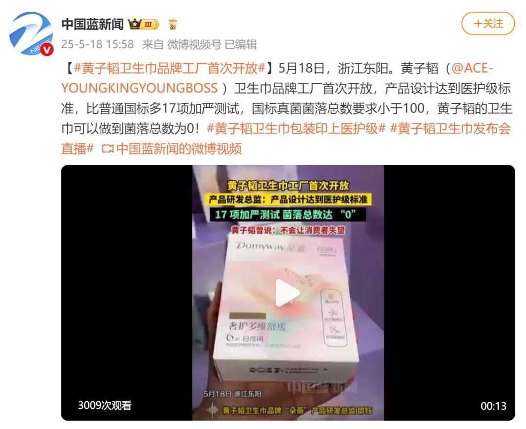 此前报谈本年“3·15”晚会上,央视曝光了卫生巾、纸尿裤、一次性内裤等卫生用品的出产乱象。随后,黄子韬在直播中称“那些赚卫生巾黑心钱的东谈主果真太恶心了”,涌现思作念透明化卫生巾工场,话题#黄子韬晓示将作念卫生巾#登上微博热搜榜第一。