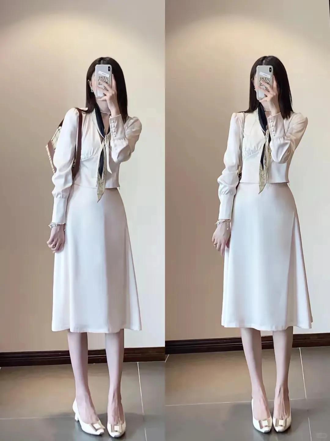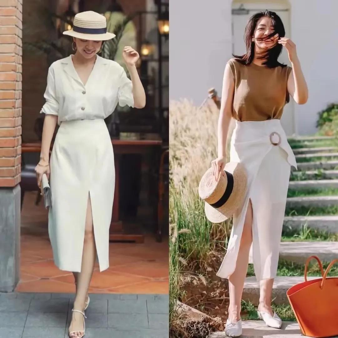 要是是去上班,那么我们可以径直用最为基础的白色衬衫搭配上开叉半身裙,这样的穿衣打扮通勤雅致,念念要和煦优雅的穿搭立场,径直选择至意衣裳单品来搭配上白色的开叉半身裙,看起来就会比拟有女东谈主味。