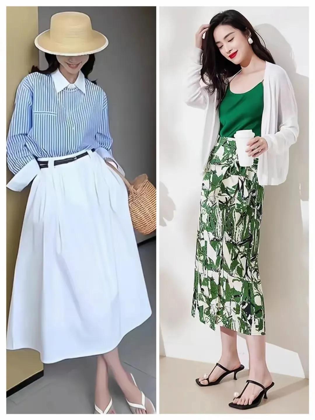 天然,关于闲居巨匠女性来说,日常穿搭念念要更显年青,更面子的情况下,我们可以选半身裙来搭配,举例底下用一件蓝白条纹的衬衫上衣搭配上白色的伞状半身裙,头上加的一款凉帽,这样的穿衣打扮显得年青,而况氛围感裕如。