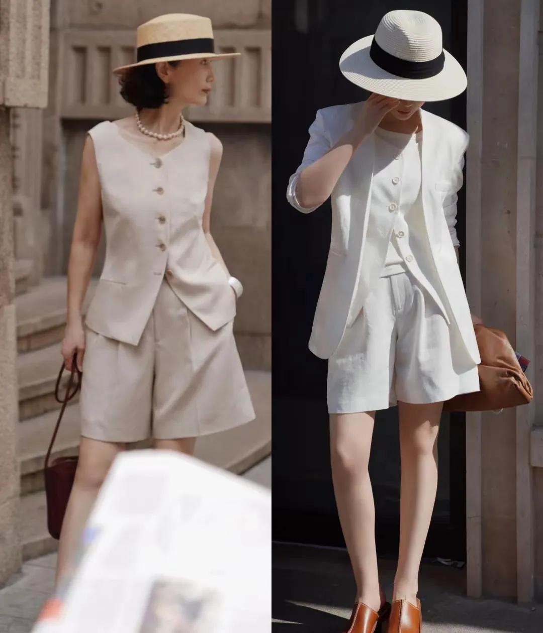 我们在这个夏令还可以选择下半身适踪的穿搭方式,要是你的腿型还可以的情况下,就径直用百慕大短裤来搭配上一件西服外衣,或者是无袖的马甲,这样的穿搭方式会愈加知晓,不外衣裳面料一定要选择挺括有型的材质,才气穿出像底下这对母女造型一样的成果。