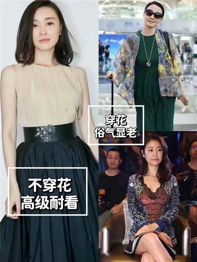 关联词,当你选择花哨的衣裳单品来穿搭,就算是女明星林心如这样的高颜值女性穿在身上也很难澌灭俗气显老的视觉成果。