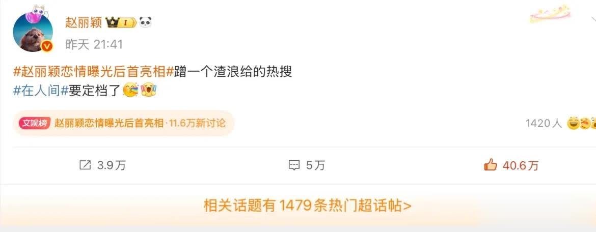 平台出头出头再送赵丽颖上热搜:“赵丽颖这算官宣新恋情吗?”