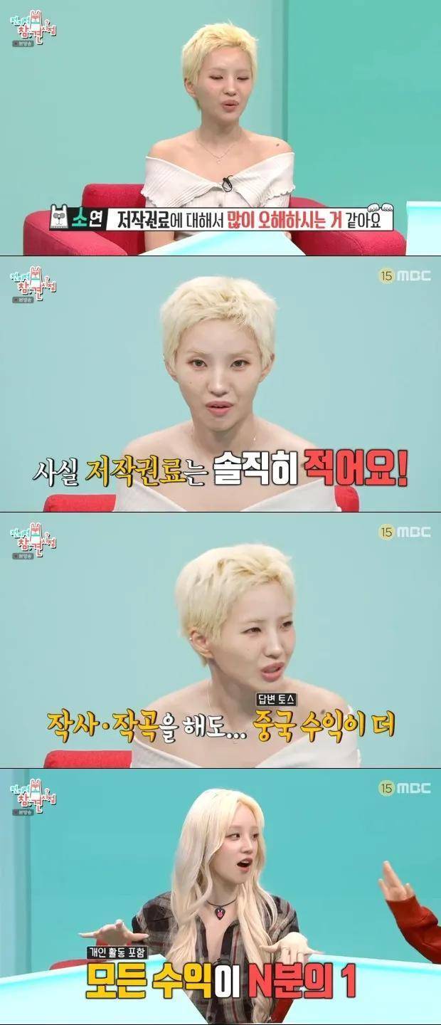 在近期播出的MBC综艺节目《全知干豫视角》中,东谈主气女团 i-dle 上节目,谈到了「版税收入」以及来自中国的收益,让宇宙齐荒谬的骇怪。