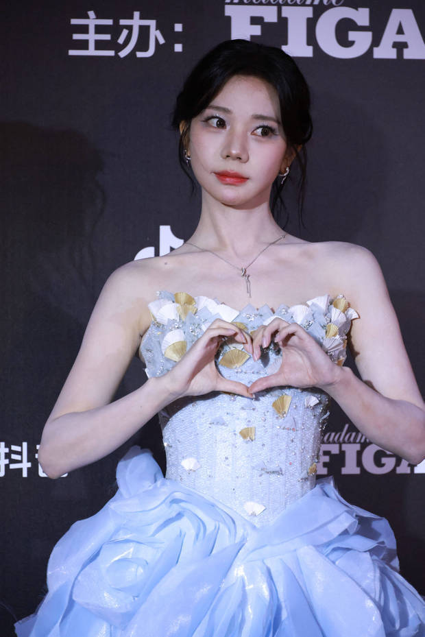 张紫宁在红毯上比心,畸形可人甜好意思。