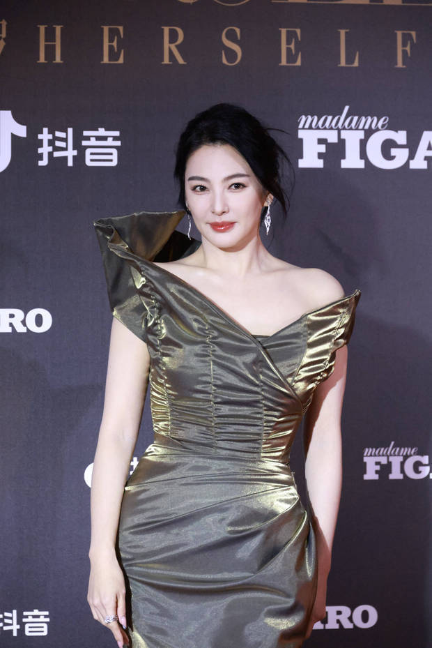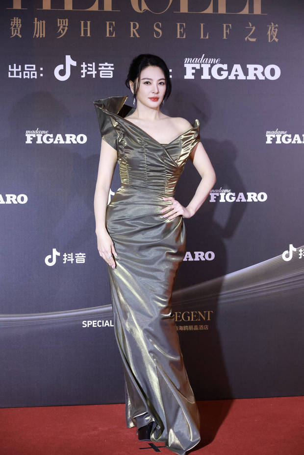 张雨绮一袭金色抹胸降服走上红毯,雍容蓬勃。