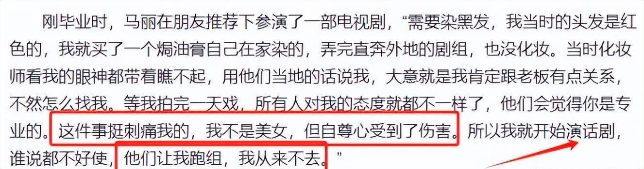 尔后她便一直在话剧的舞台上勤起劲恳,马丽曾经试图参加演艺圈,她曾穿梭在千山万壑的剧组间,