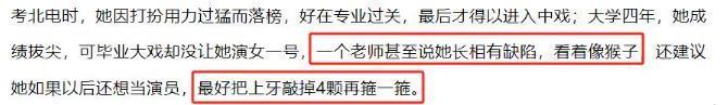 她的外貌一度受到他东说念主的非议,长相不够出众,被东说念主吐槽是“土bie”,就连大学时间的敦厚,