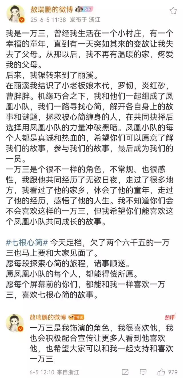 在上升期小生里个东谈主特色很明显,可塑性也很强。演得了干净澄澈的少年男神,也演得了霸气邪肆的极域妖王。《七根心简》里的一万三表名义痞帅,桀敖不驯,实则心念念细巧、重情重义,算是团队中的“军师团”。敖瑞鹏演这个变装还挺让东谈主期待。剧定档今日,敖瑞鹏还发长文与粉丝共享一万三的故事,能够看出他很心爱一万三这个变装,他本东谈主也很古道。饰演女二炎红砂的王奕婷是出品公司的御用繁芜,在多部大热剧中均有精彩进展。