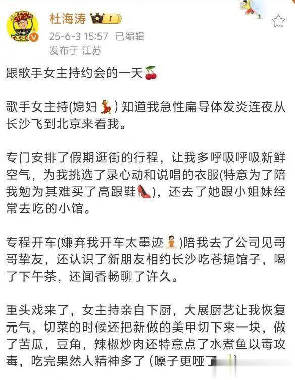 杜海涛在网上说我方这回和妻子一谈过了个绝顶的日子。