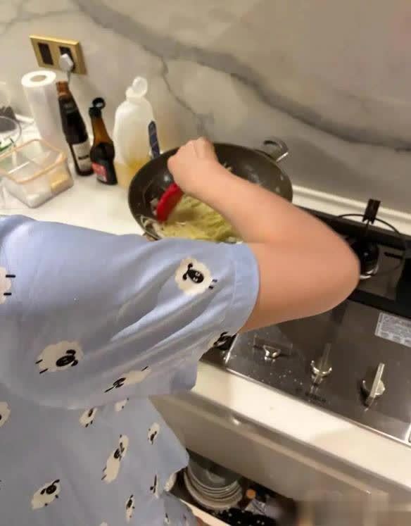 沈梦辰穿寝衣作念饭,特地“接地气”。