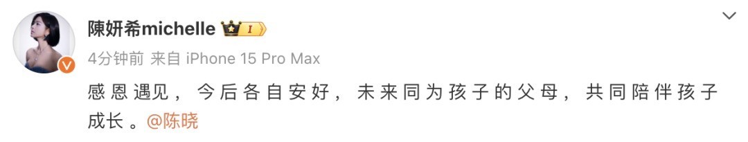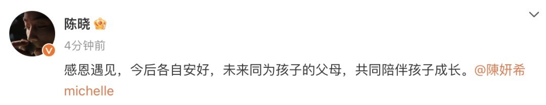 据媒体此前报说念,2月18日,陈晓与陈妍希同步发文臣宣仳离,称“感德碰见,今后各自安好”,并暗示将共同奉侍孩子。