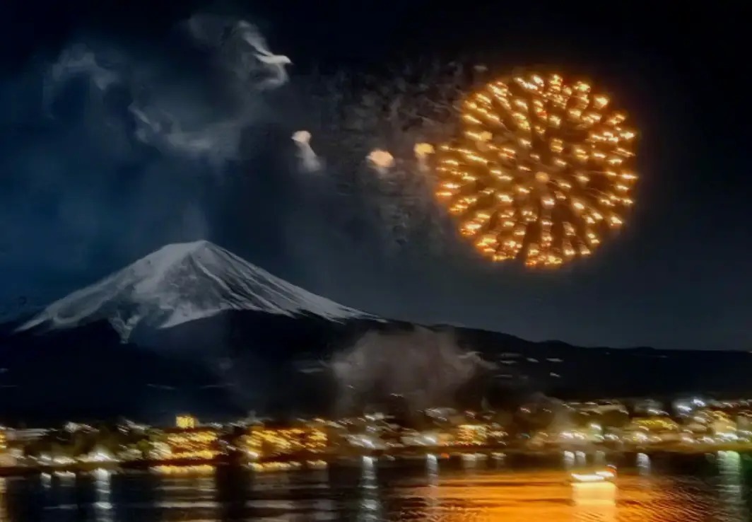 安福相册 章子怡日本度假,富士山看烟花庆生好恣意,与犬子同框好意思似姐妹花