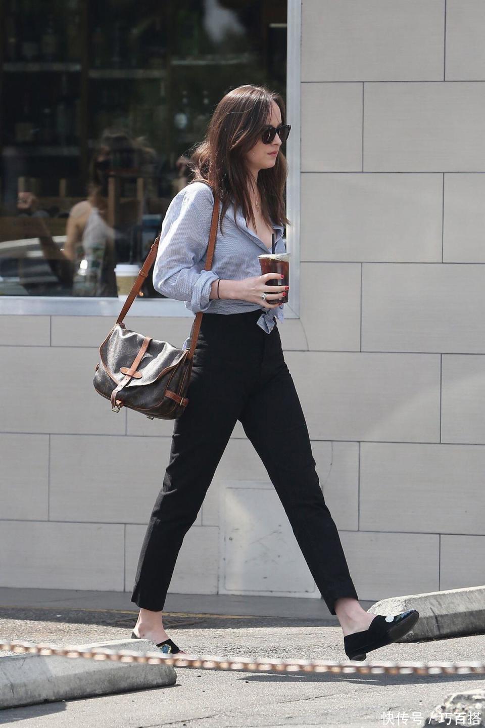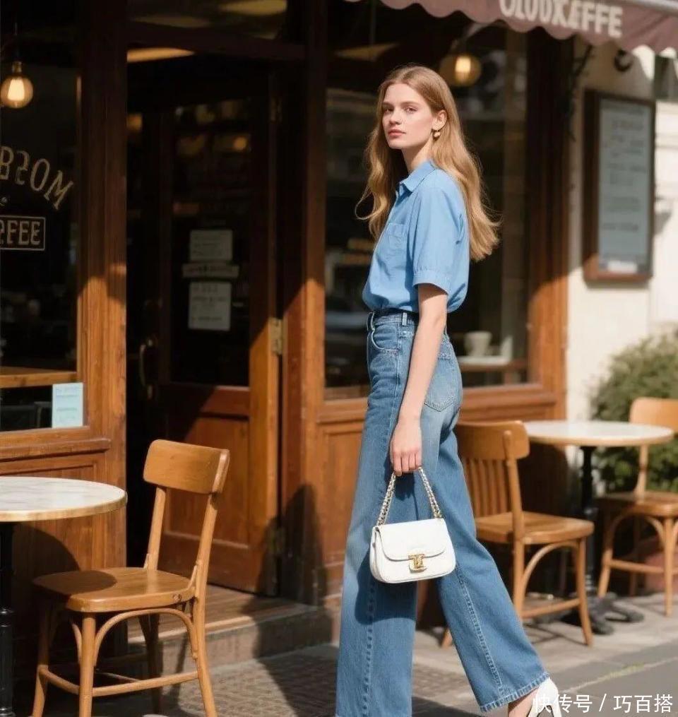 为了提高不雅感,大家在单品色系上需要作念到百分百和洽,以基础色为主可以减少出错的概率,雾霾蓝衬衫搭配纯玄色长裤,简便耐看,轻熟优雅,对40+女性来说高出友好。