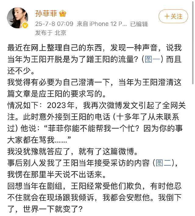 安福相册 好心维护却遭背刺?孙菲菲发长文揭露剧组霸凌真相,王阳东说念主设垮塌