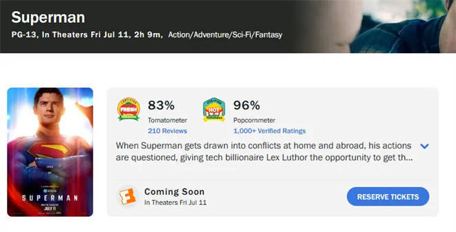 国外口碑提前开释后,当今该片的爆米花指数96%、烂番茄簇新度83%,MTC评分70分,可见稳住了不雅众和影评东谈主的评价。在超英电影质地下落的合座趋势下,本片口碑很是亮眼。