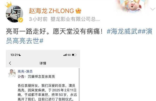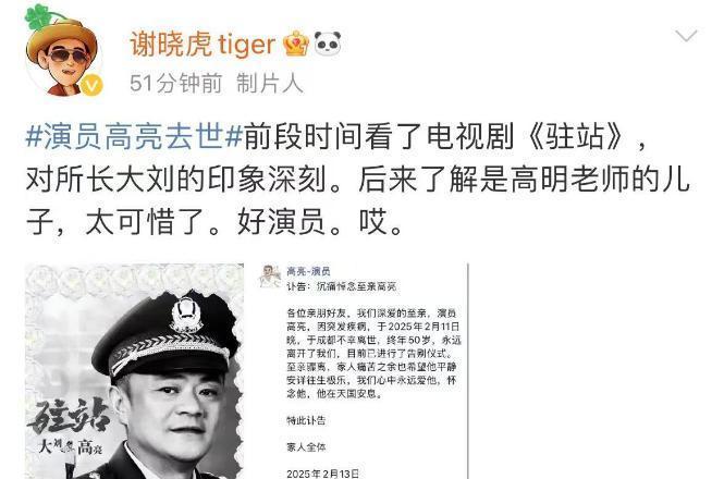 2月13日,文娱圈传来凶信,驰名演员高亮归天,享年50岁。