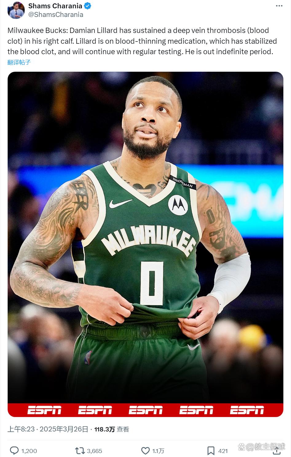 北京时辰3月26日上昼,据NBA名记Shams报谈,雄鹿后卫利拉德确诊为右小腿深静脉血栓,无穷期休战。利拉德暂时离开NBA,驱动服用血液稀释药物来自在血栓。利拉德接下来会如期接续接纳查抄,本赛季能否回反璧是未知数!