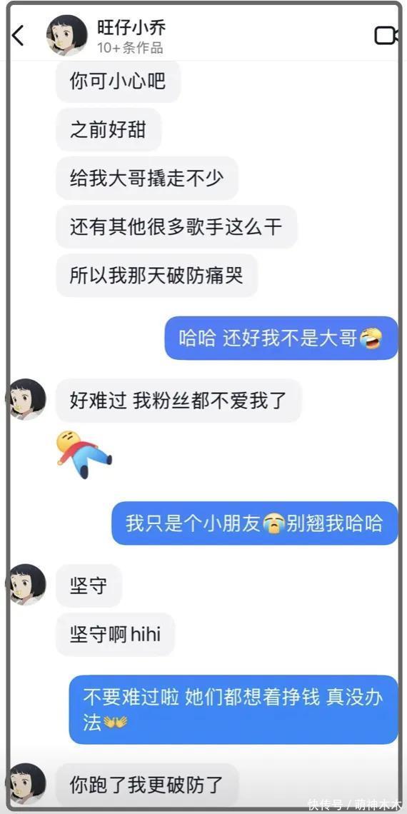 不仅如斯,在年老上面时候,旺仔小乔还让年老与其他粉丝们给我方家的签约歌手刷礼物,成果年老照作念之后,旺仔小乔又不繁盛了,说某某歌手齐把我方的年老们给撬走不少,让这位榜一年老留点心眼,还念念留下这位年老,讲话之间齐是对这位年老的依赖。