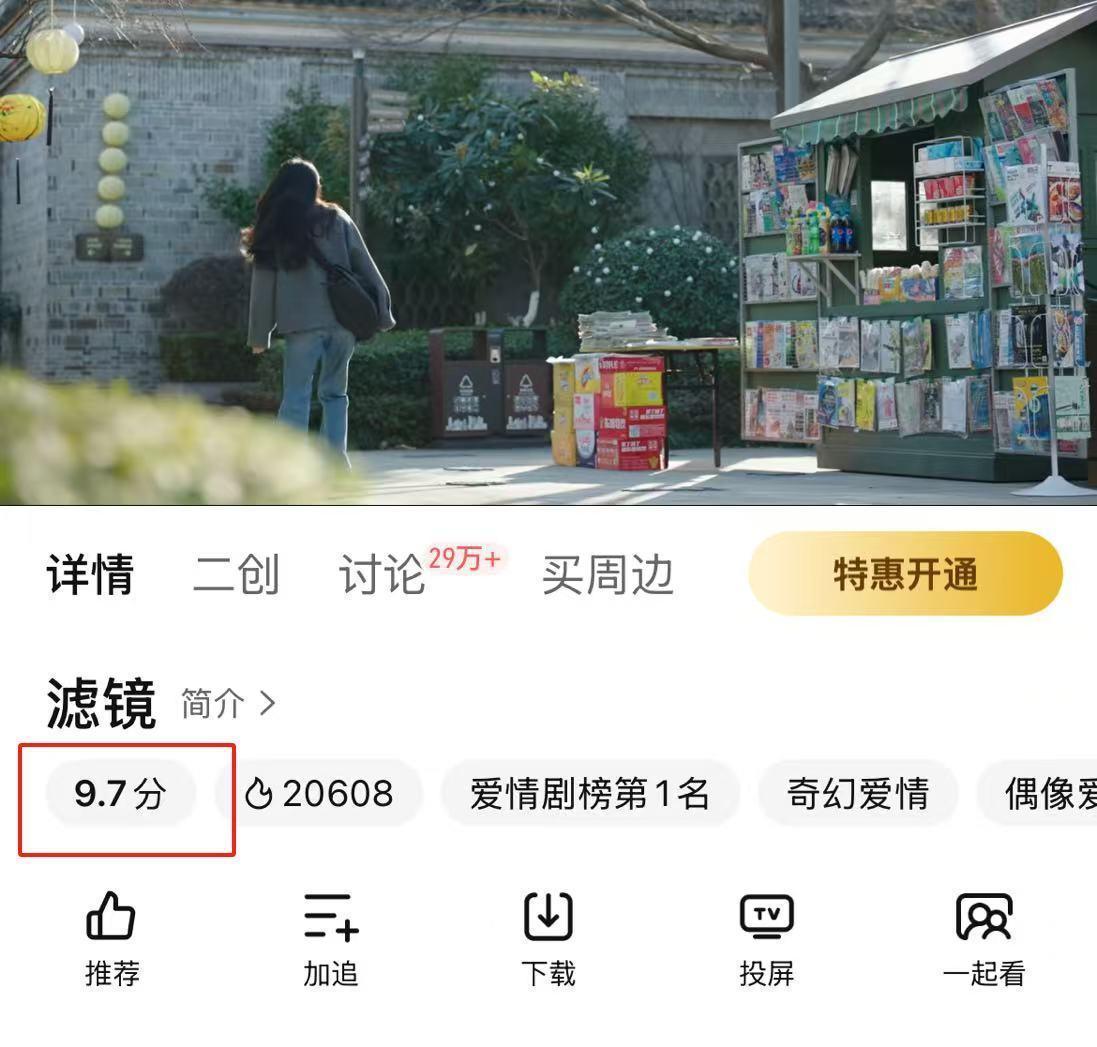 最近,檀健次主演的《滤镜》就收拢了这个痛点,才播三集,豆瓣评分就飙到了9.7,径直把我给看上面了!