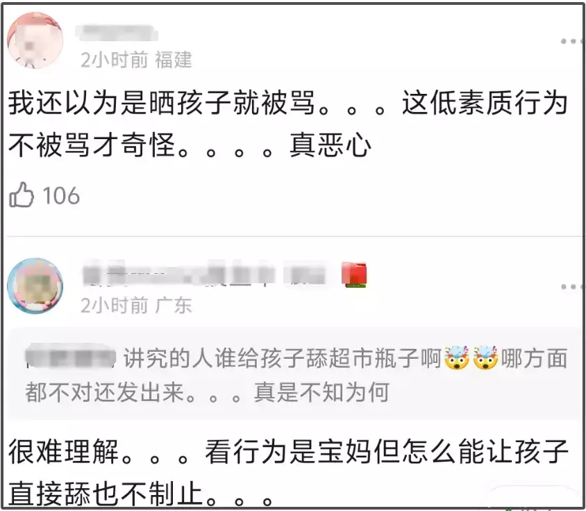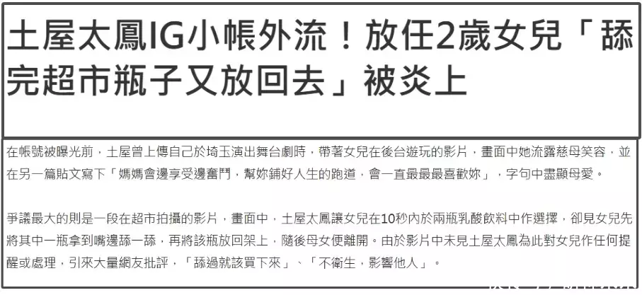 土屋太凤小号激发的争议说小不小、说大不大,转头起来就一句话——宝妈放任孩子舔超市瓶子,舔结束不弄干净就给放了且归,说破天即是不老成,挺莫得教育的。