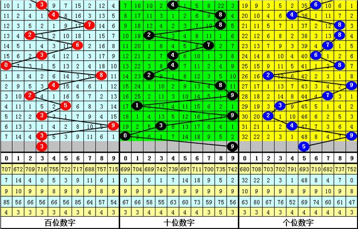 组选号码0-9开出频次为,号码3出现19次,9出现15次,7出现14次,4、8出现13次,0出现12次,1、6出现10次,5出现6次,2出现5次,本期奖号不全在最冷四码:1256中,看好最热四码3479中出号,眷注号码3。