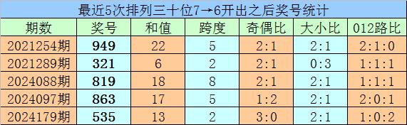 1、最近两期罗列三十位号码开出号码区分为7和6,历史上十位号码邻接两期同期出现号码7和6的奖号共开出61期。最近五次下期开出号码为:949、321、819、863、535;