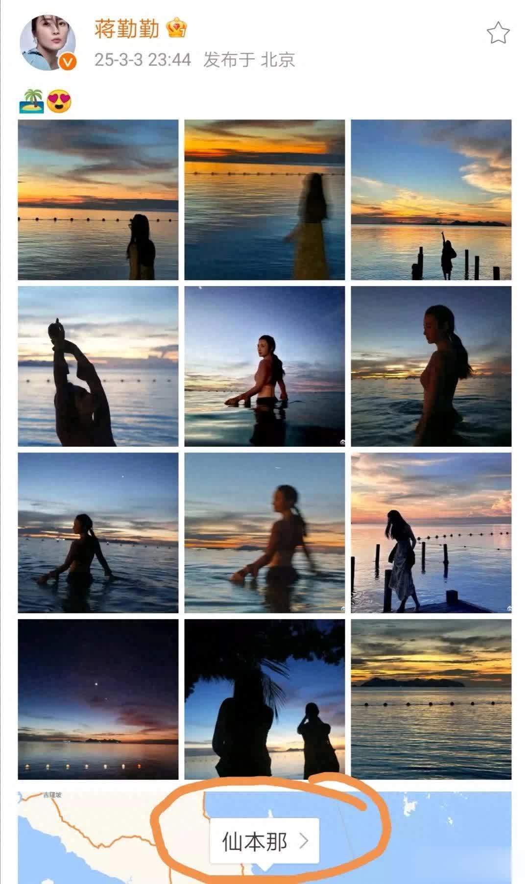 蒋勤勤共享的这几张游玩照,是她去马来西亚仙本那度假时所纪录下来的。