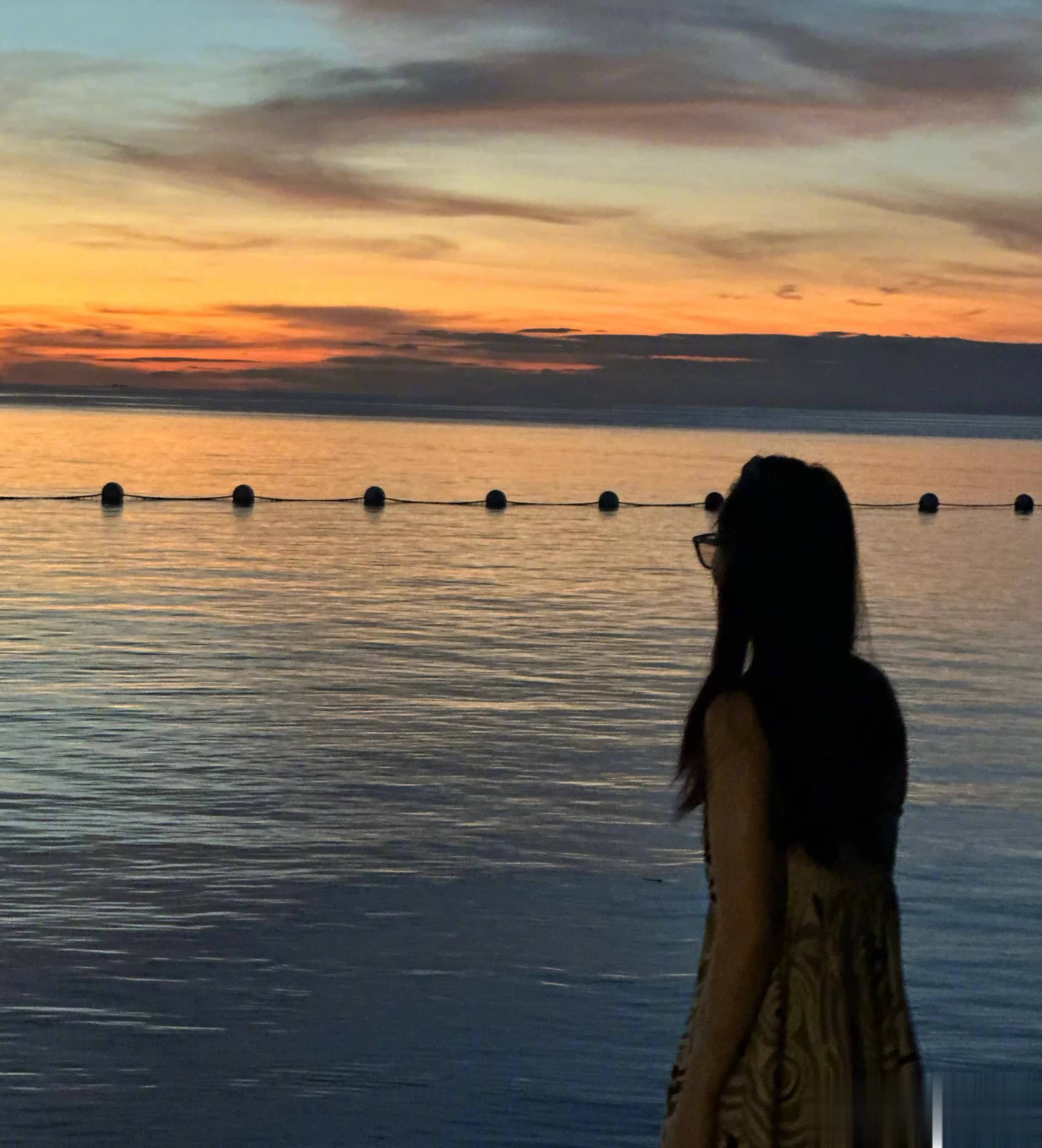 看蒋勤勤看日落的这张背影照,活脱脱的就像是个20岁的女生。