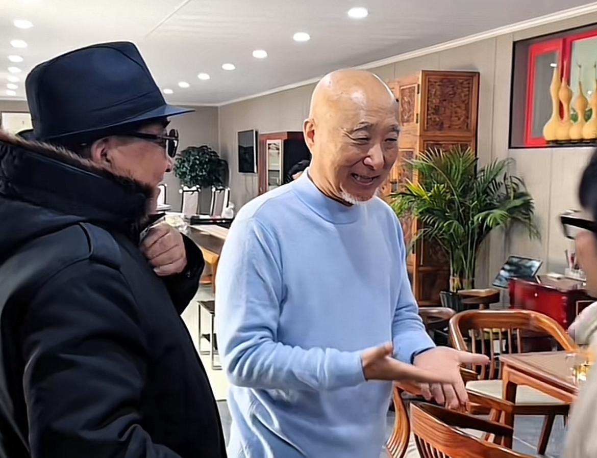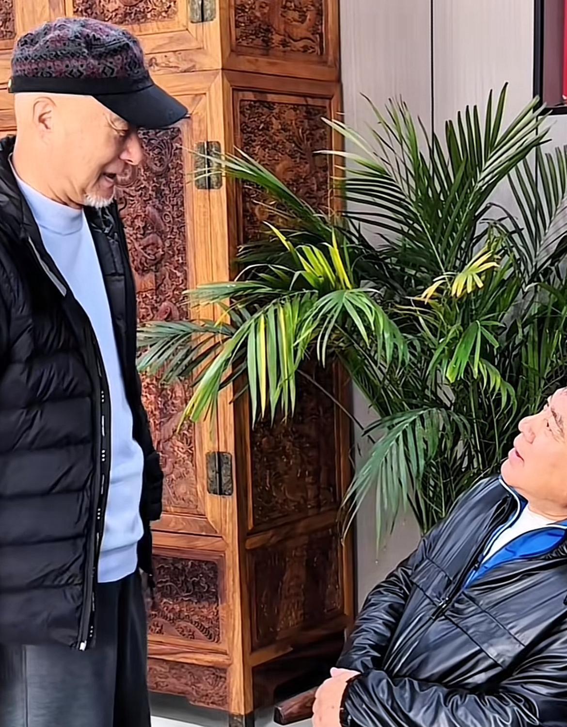 朱时茂也对至交的到来报以祥和的笑貌,两东说念主之间的互动自有关词亲切,仿佛一双亲昆季。
