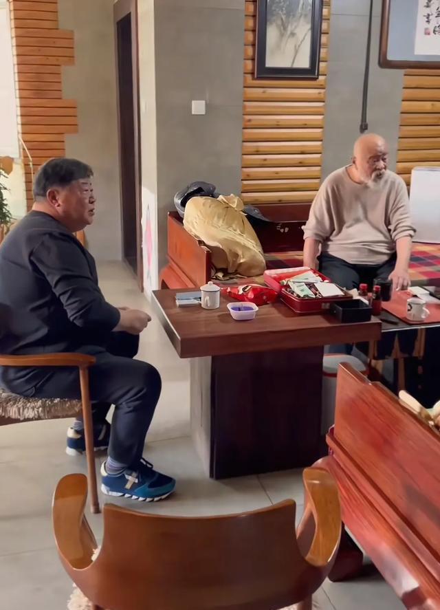 演员杨立新到李琦家来的时分,看起来有点顾问,就像一只刚进入新环境的小鹿。不外李琦和刘金山可关怀啦,两东说念主一唱一和,捏意要杨立新坐在那张罗汉床上。刘金山和李琦就像多年未见的知友,关联熟络得很,很天然地就搬来一把木质椅子,坐在两东说念主傍边。