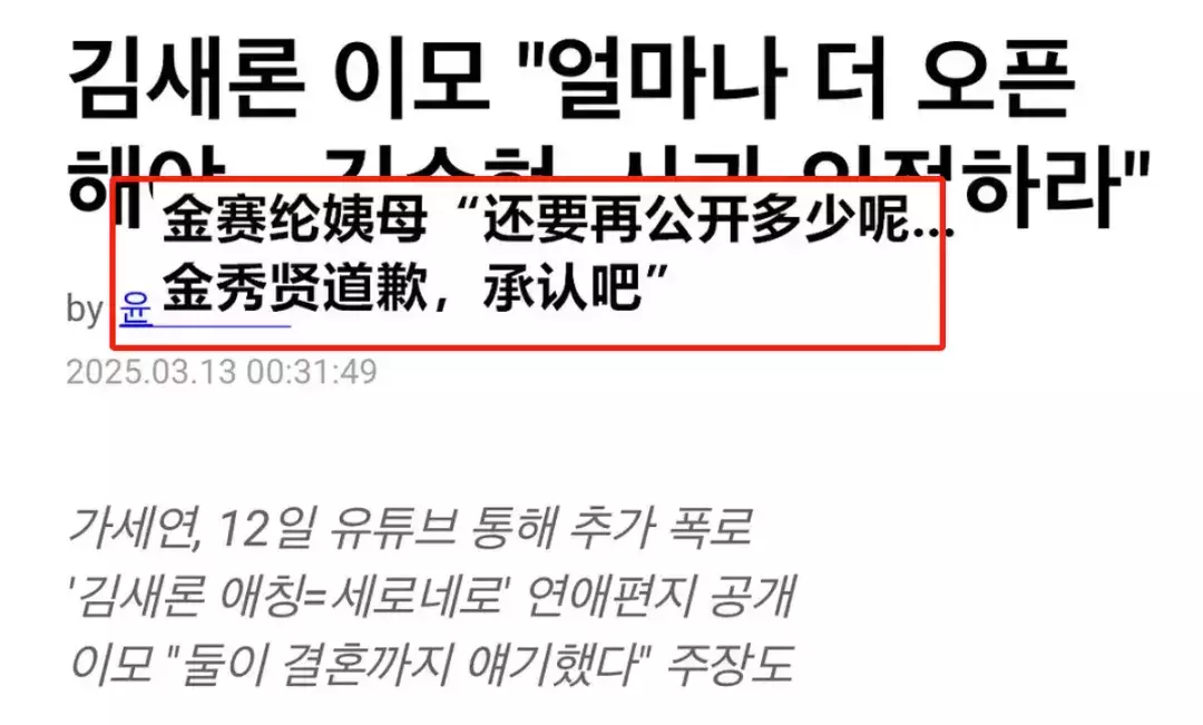 此次金赛纶母亲瞄准了无良记者,而她之是以没太多提到金秀贤,是因为金秀贤公司说他情景不好,金赛纶母亲示意今天先放过他。